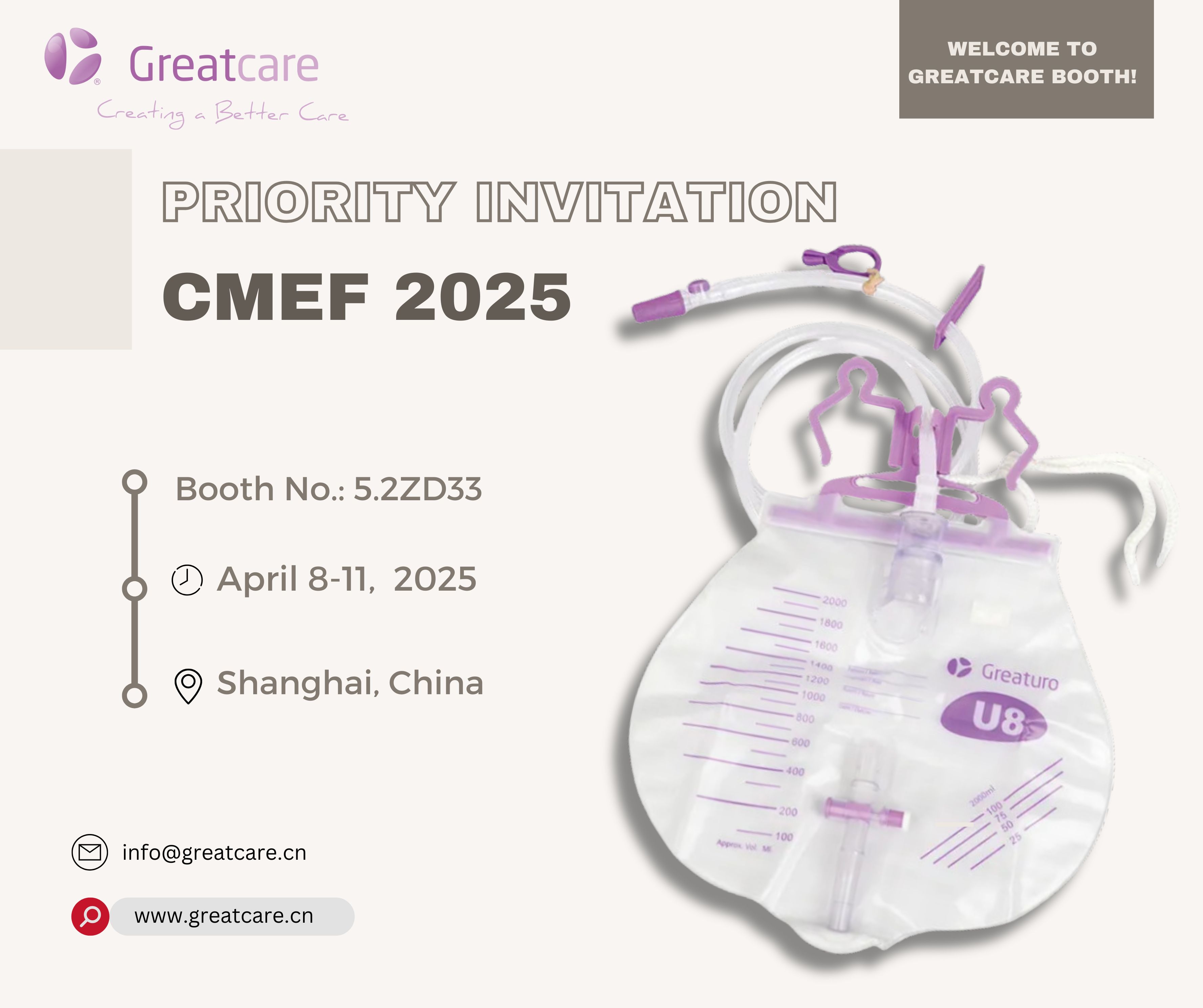 GreatCare è entusiasta di annunciare la sua partecipazione a CMEF 2025. Durante la mostra di quattro giorni, lo stand di GreatCare (stand no.: [5.2zd33]) ha attirato visitatori da Asia, Europa, Medio Oriente, Americhe e altre regioni. L'azienda ha messo in mostra la sua gamma autoprodotta di sacchetti di urina, sacchetti di drenaggio, cinture elastiche, maschere per il viso e altri materiali di consumo medico. Molti di questi prodotti sono stati certificati con CE, ISO 13485, FDA e sono ampiamente utilizzati negli ospedali, nelle istituzioni infermieristiche e nelle ambienti sanitari a domicilio.